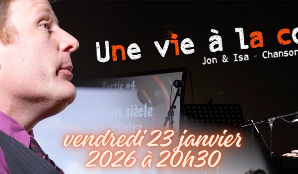 Chansons humoristiques et satiriques sur notre quotidien, portées par Jon & Isa. Entre éclats de rire et clins d’œil à la réalité, laissez-vous embarquer dans un voyage musical où dérision et sincérité s’entremêlent. Porté par une mise en scène originale, voix, guitare, piano, trombone, flute basse… Entre musiques entrainantes, paroles percutantes et mise en scène originale, « Une vie à la c** » parle au public de ce qui les traverse : une quête de sens dans … Détails →